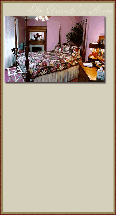 This mauve-decorated room features a Queen-sized, four-poster mahogany